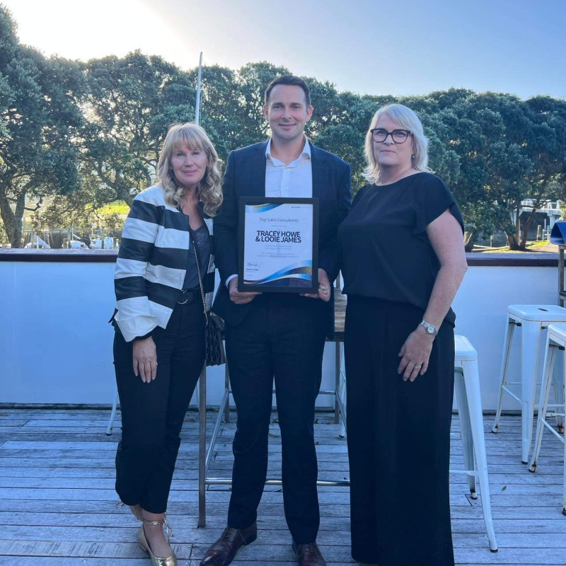 Looie & Tracey receiving the award from Harcourts Albany Branch Manager Travers Smyth